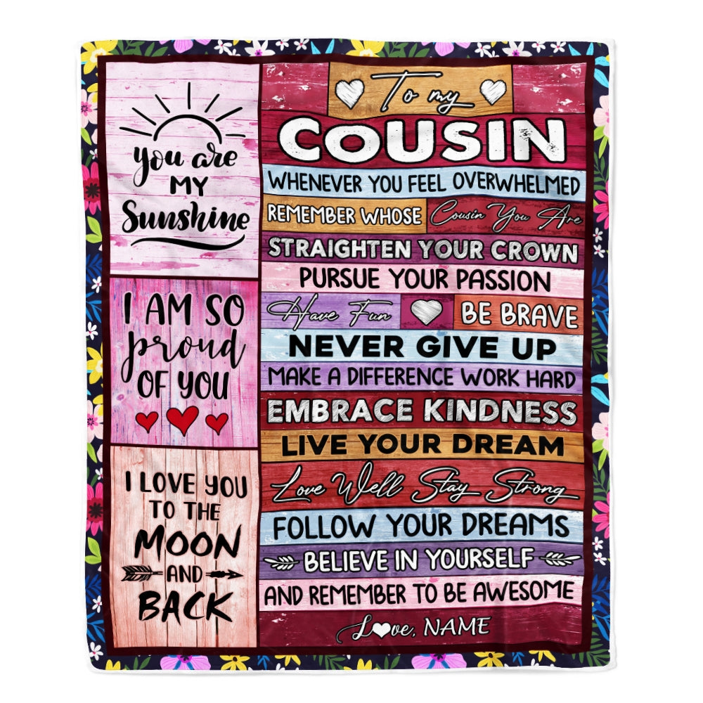 Personalized To My Cousin Blanket Believe In Yourself Awesome Pink